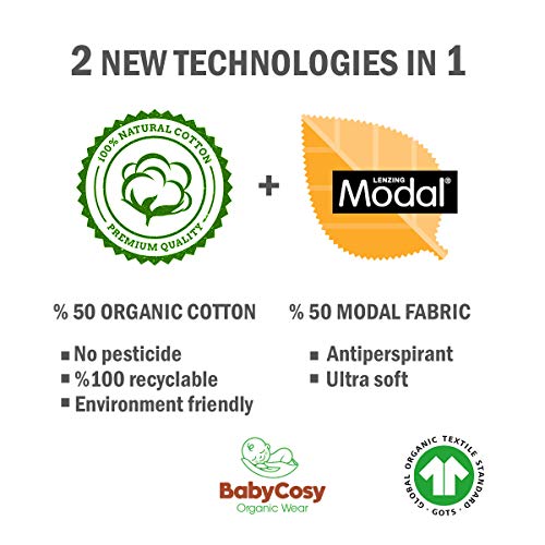 %50 Organic Cotton-%50 Modal Fabric Baby Romper Pajama, 2 Pack, Antiperspirant, Unisex