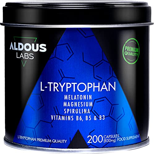 200 Gélules Tryptophane 600mg + Mélatonine et Mangésium + Vitamines B6,B5,B3 + Spiruline | Hautement Dosé pour un Sommeil Réparateur | 1,78mg de Mélatonine | L Triptophane Pour Bien Dormir