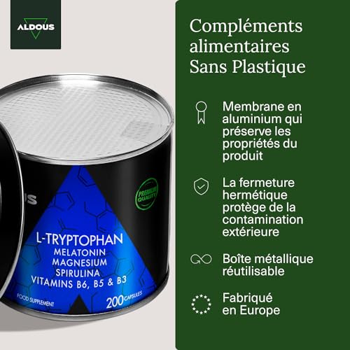 ♻️ ÉVITEZ L’INGESTION INVOLONTAIRE DE MICROPLASTIQUES EN CONSOMMANT DE LE TRIPTOPHANE – Les aliments en contact prolongé avec des emballages en plastique risquent de relaxer des substances telles que le bisphénol A et les phtalates, pouvant contaminer les denrées alimentaires emballées. En choisissant les compléments alimentaires sans plastique Aldous Bio, vous éviterez l’liquidation involontaire de microplastiques et contribuerez activement à la préservation de la planète.