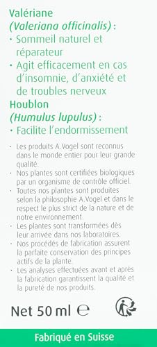 Specification: A.VOGEL – Complément alimentaire – Améliore la qualité du sommeil – Extrait de valériane et de houblon frais – Naturel et biologique – Anti-stress, Relaxation & Sommeil – Effet calmant – 50 ml