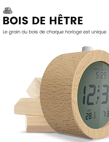 📐【Design unique et innovant】La combinaison de l’artisanat traditionnel du bois et de la technologie moderne. Utiliser des matériaux de haute qualité et robustes 100% en bois, sculptés à cause un morceau de hêtre massif par un processus de sculpture complexe. Avec un grain de bois aborigène distinctif, rendant chaque réveil numérique unique.