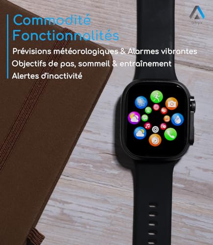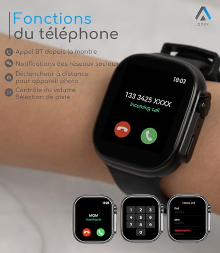 Abyx Fit Touch 5 – Montre connectée avec écran Tactile AMOLED 1,75 Pouce, Fonctions téléphone, Suivi de la santé (Pression artérielle, fréquence Cardiaque, Sommeil, SpO2) et Sport, étanche IP68