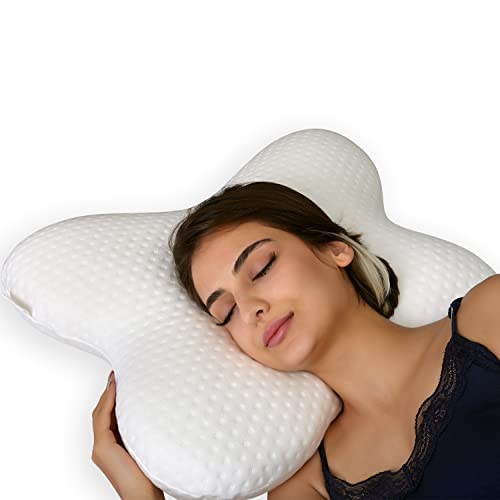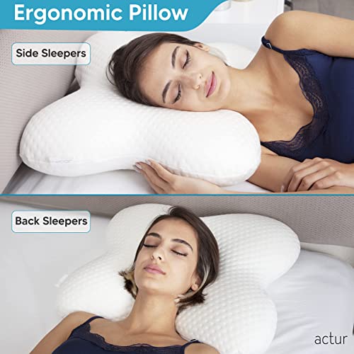 ACTUR Oreiller ergonomique en mousse à mémoire de forme de papillon pour les personnes dormant sur le côté et le ventre. Oreiller orthopédique pour dormir, coussin cervical pour douleurs cervicales,