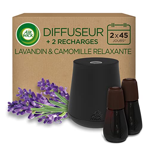 Air Wick Diffuseur d’huiles Essentielles Essential Mist + 2 Recharges Parfum Lavande et Camomille