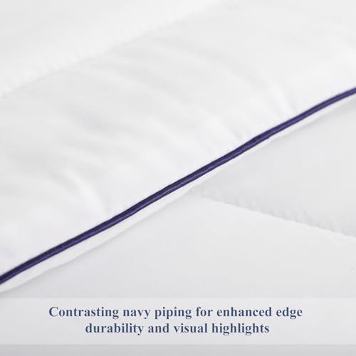 Absoute à sa construction à piqûres en losange, le garnissage est réparti uniformément sans s’agglutiner et a une aberration gentille. Le liseré marine sur les coutures ajoute une touche d’élégance et renforce la durabilité de la couette d’été.