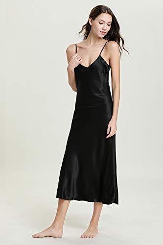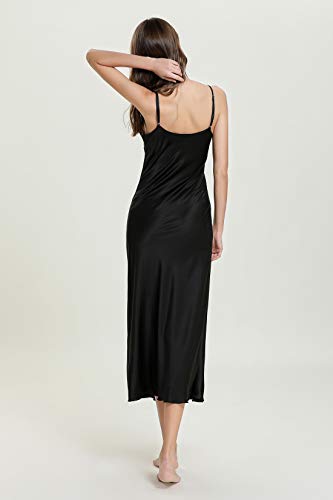 Aivtalk – Chemise de Nuit Femme Longue pour Eté en Soie Artificielle Robe de Nuit à Bretelles Col V Lingerie Nuisette Taille 34-44