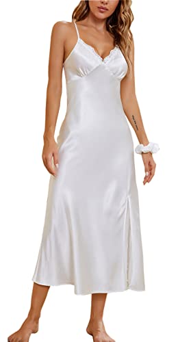 Specification: Alcea Rosea Chemise de Nuit Femme Satin Dentelle Pyjama Sexy à Col en V Robe de Chambre Longue sans Manches pour Femme Elégante