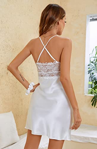 Specification: Alcea Rosea Nuisette Femme Chemise de Nuit Satin Dentelle Pyjama Sexy Robe de Chambre Satiné Négligé Soyeux Robe de Mariage