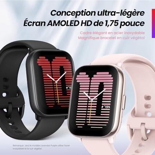 Specification: Amazfit Active SmartWatch avec coach sportif AI, GPS, appels Bluetooth, stockage de musique, batterie 14 jours, écran AMOLED 1,75″ et compatible Alexa, rose pétale