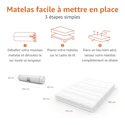 Specification: Amazon Basics Matelas 7 zones en mousse à mémoire de forme, Moyenne ferme (H3), 135 x 190 x 20 cm, Blanc