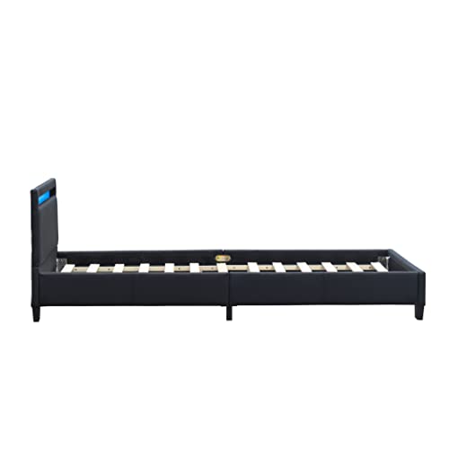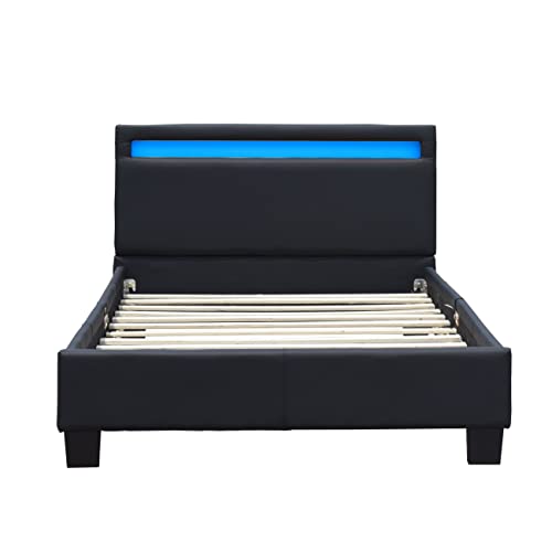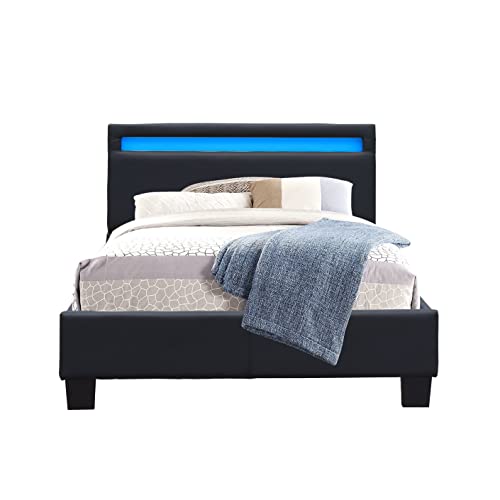 Specification: Angel – Solide et Confortable Lit 120×190 avec Sommier + Tête de Lit avec Eclairage LED Couleur Noir + Pieds en 10 cm pour Matelas en – 13 Lattes – revetement PVC Simili Facile d’entretien – Mont
