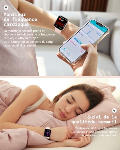 💗【All-Day Health Tracking】Le capteur PPG intégré de haute précision la montre suivra votre taux de coeur pendant 24 heures. It also Monitors your sleep (awake, mild, and deep sleep) and generates sleep quality reports par analyse de données, allowing you to better understand your physical condition.