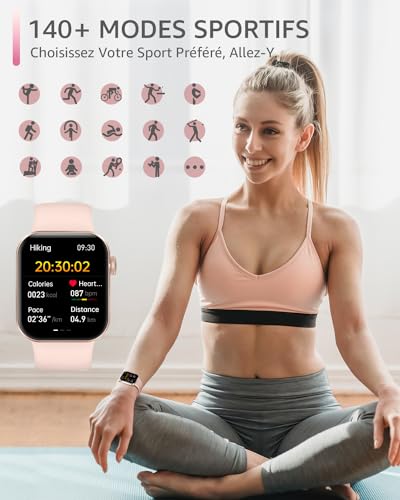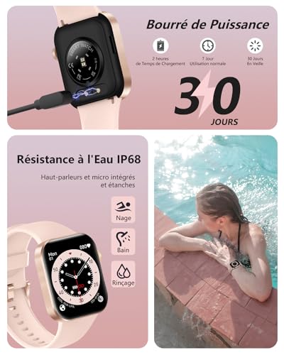 💗 【1,85 pouces look élégant et 100 + cadran personnalisé】L’écran HD de 1,85 pouces dispose d’une résolution élevée de 390 * 450, la luminosité de l’écran de la montre est réglable pour être clairement visible même dans une lumière intense. Vous pouvez utiliser l’application [H Band] pour personnaliser le cadran qui convient à votre style personnel, choisir librement plus de 100 cadrans et même utiliser des photos.