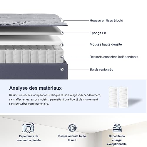Aucune Perturbation : Les ressorts ensachés minimisent les perturbations causées par le partenaire et garantissent un sommeil fréquente et paisible. Des centaines de ressorts assurent un soutien manuel de chaque partie du tanière Pour différentes positions de sommeil