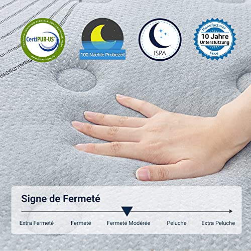 Mousse Haute Elasticité : La mousse haute densité épouse la type de votre tanière et offre un soutien la nuit Pour toutes les positions de sommeil Toutes les mousses sont fabriquées en CertiPUR-US à cause un sommeil sûr et sain