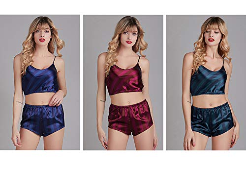 Specification: BigForest Femme Sexy Satin Nightgown Stripe Two-Piece Outfit Chemise de Nuit Top and Shorts Set Sleepwear Tracksuit Set