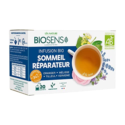 Biosens – Infusion Sommeil réparateur – Oranger, Mélisse, Tilleul et Verveine – Certifié Bio AB – Fabriqué en France – 20 sachets
