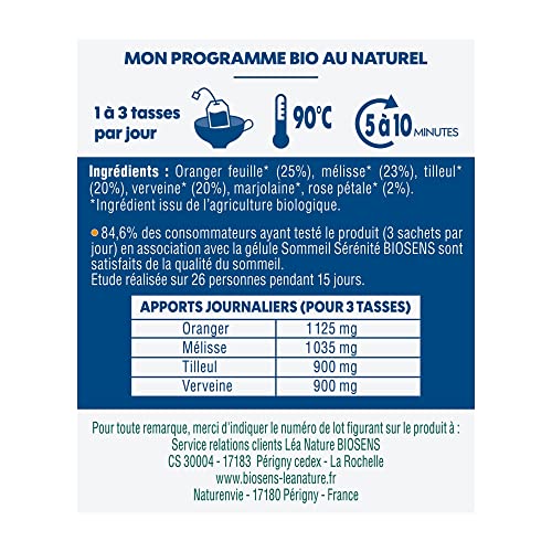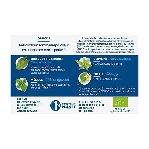 Specification: Biosens – Infusion Sommeil réparateur – Oranger, Mélisse, Tilleul et Verveine – Certifié Bio AB – Fabriqué en France – 20 sachets