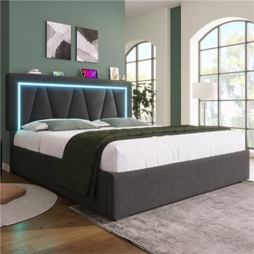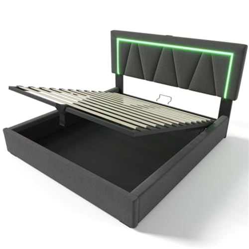 Specification: buiesjole Lit Rembourré avec Fonction De Chargement USB De Type C LED Lit Double King Size Cadre De Lit en Lin Lit Coffre Lit D’adolescent pour Adultes Lit D’appoint Gris 160×200 Cm