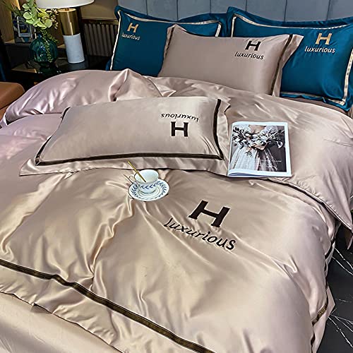 Cactuso Bed Sheets King Size Set 100% Cotton,Silk Four,Piece Ice Silk European Light Luxury Bed Single