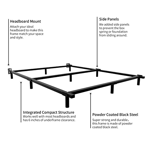 Specification: Cadre de lit en métal pour grand lit, 17,8 cm, base de support robuste à 9 pieds pour sommier tapissier et fond de matelas, 1360,8 kg, assemblage facile, sans outil, noir