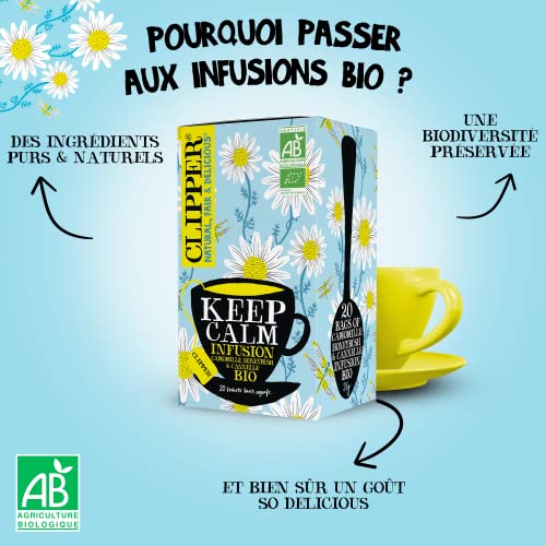 CLIPPER – Infusion Bio – Keep Calm – Camomille, Honeybush & Cannelle – 20 Sachets d’Infusion Bio – 1 paquet