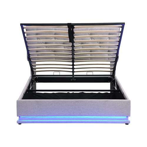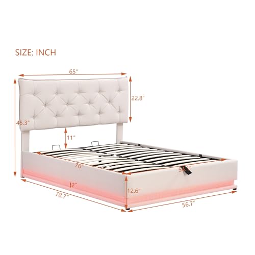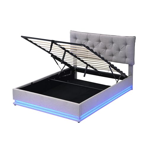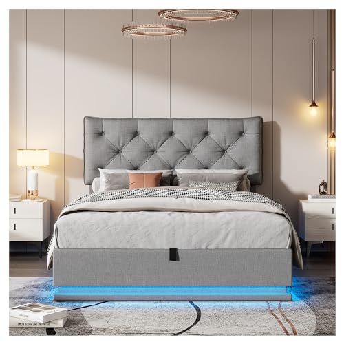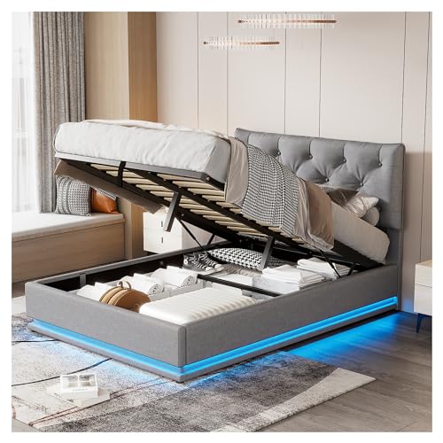 Specification: COCOSILIYA Upholstered Bed with Hydraulic Storage System and LED Light, Modern Platform Bed with Button-Tufted Design Headboard,Lits