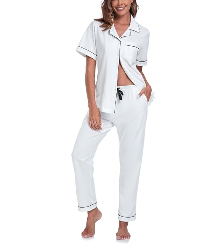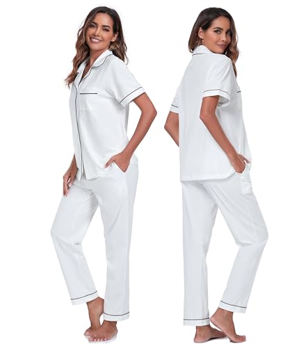Specification: COLORFULLEAF Pyjama 100 % coton pour femme avec boutonnière – Ensemble pyjama 2 pièces