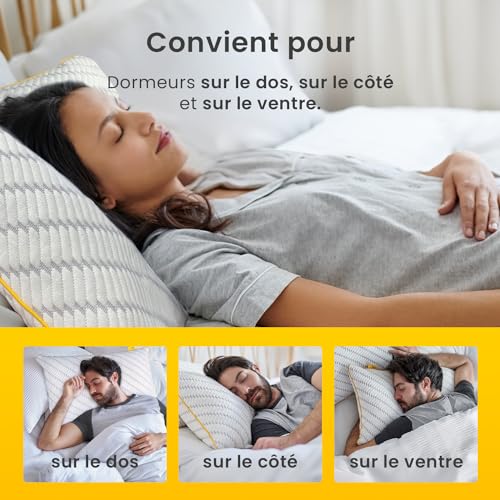 Oreiller Ergonomique avec Soutien de la Tête et du Cou – La mousse à mémoire de forme 40D, leader sur le marché, offre un rebond copieusement plus lent que les oreillers avec un remplissage en mousse mixte 20D. Cela permet de mieux soutenir la tête, le cou, les épaules et le dos et de résumer les tensions musculaires Dans un sommeil plus paisible et sans douleur.
