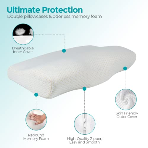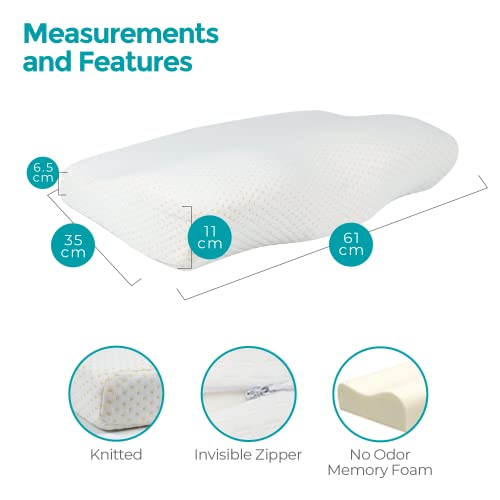 Specification: Edihome, Oreiller Ergonomique Cervical, Viscoélastique, 50 x 30 x 10 cm, Mousse à Memoire de Forme, avec Housse en Coton Double, Hypoallergénique