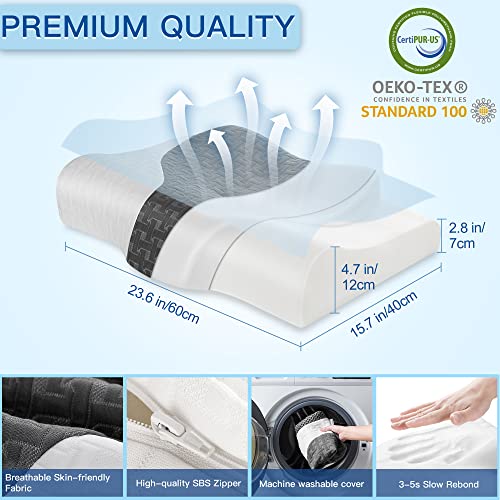 MOUSSE À MÉMOIRE DE FORME SÛRE ET DE QUALITÉ SUPÉRIEURE : à nous oreiller de soutien du cou est certifié CertiPUR-US et Oeko-Tex. Il est composé d’une mousse à mémoire de forme de haute densité qui rebondit doucement en 3 à 5 secondes, et peut ajuster intelligemment sa fermeté en détectant la température du corps, ce qui confère à l’oreiller une fonction de soutien et de confort. Tous les matériaux sont exempts de produits chimiques à cause une meilleure santé.
