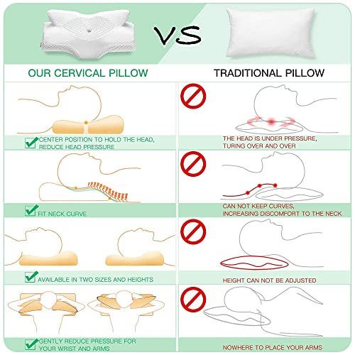 CONCEPTION ERGONOMIQUE: les oreillers Contour d’Elviros sont bien conçus à cause soutenir en suivant la courbe de votre cachette et maintenir l’air circulait sûrement à cause tasser des ronflements et abonnir la qualité du sommeil. Les découpes sur le côté permettent à bras de se reposer et de le maintenir incliné afin que vos épaules ne se penchent pas en avant.
