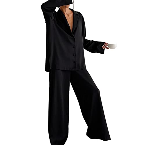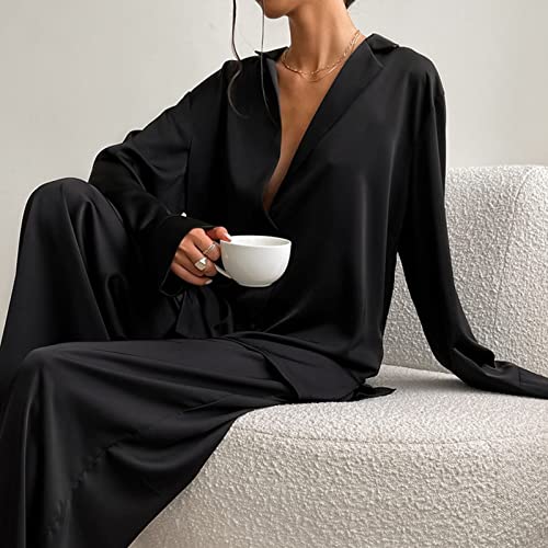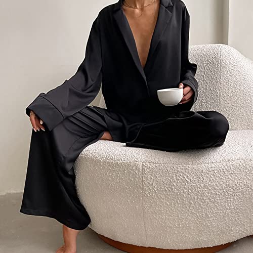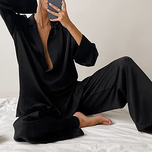 Specification: Ensemble de Pyjama 2 Pièces en Satin à Manches Longues pour Femme (S)