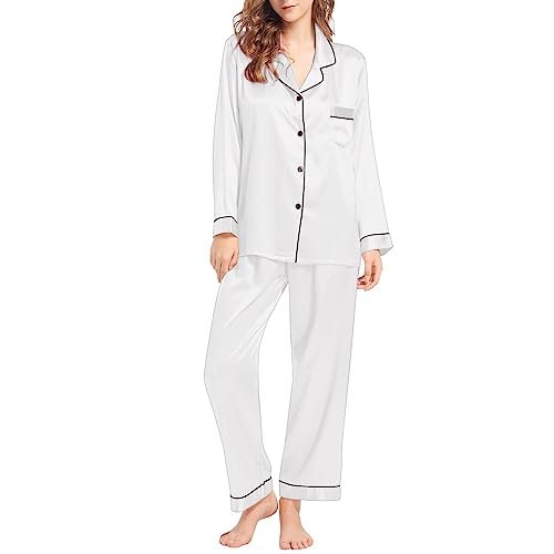 Ensemble de Pyjama pour Femme en Satin de Soie à Manches Longues Pyjama en Satin de Soie pour Femme Chemise de Nuit Chic Nightwear 2 pièces à Manches Longues Hauts + Pantalon
