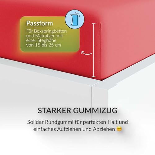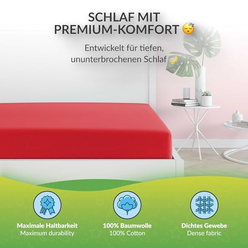 ETÉREA Drap Housse Jersey 180x200cm – 200×200 [100% Coton] qualité de Marque 180x200cm – 200×200 – Bonnet de 25cm – Bed Sheets Cover – Drap-Housse en Coton élastique – Certifié OEKOTEX – Rouge