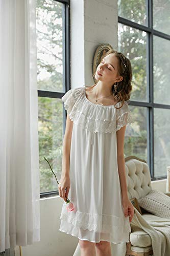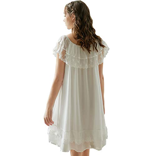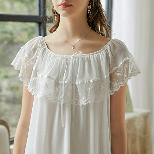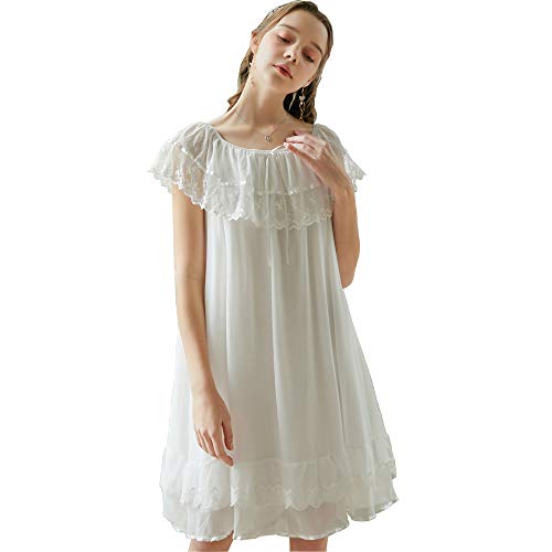 Specification: Flwydran Femmes Coton Chemise De Nuit Chemise De Nuit À Dentelle Style sans Manches Victorien Vintage Nuisette Sweet Loose Confort Longue Jupe Vêtements De Nuit