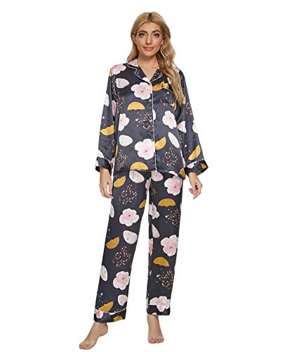 GOSO Ensemble de pyjama dans femme – Pyjama boutonné dans femme – Motif floral – Manches longues – Vêtement de nuit doux