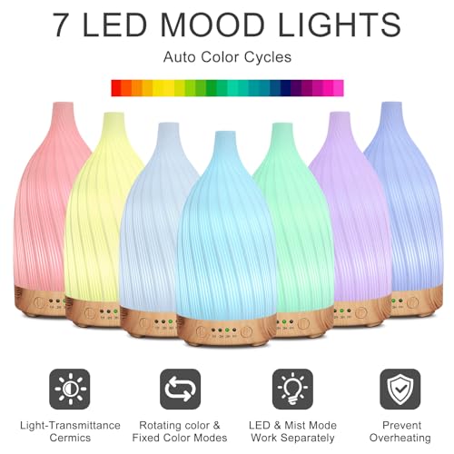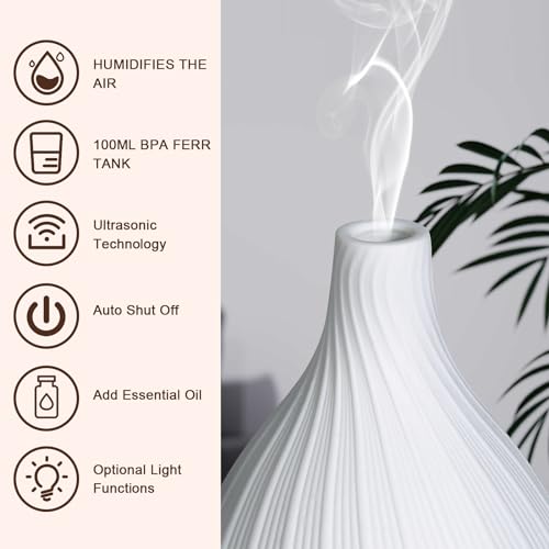 Specification: GuKKK Diffuseur d’huiles Essentielles en Céramique Blanche, Ultrasonique Humidificateur Diffuseur Aromathérapie Electrique, Arôme Parfum Electrique avec 7 Couleurs Lumières LED,pour Chambre/Yoga 100ml