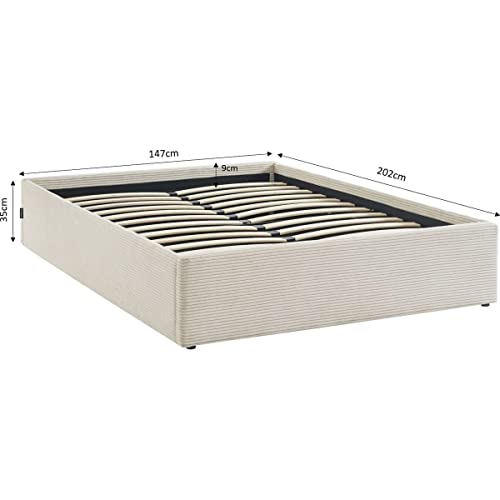 Specification: HOMIFAB Lit Coffre 140x190cm en Velours côtelé Beige + sommier à Lattes – Handy