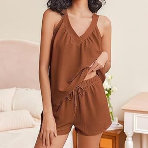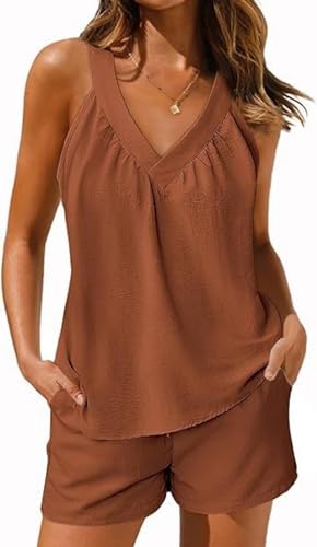 HURUMA 2 Piece Lounge Sets for Women Soft Pajama V Neck Cami PJ Shorts,Summer Sleepwear Set with Pocket,Sleeveless Loungewear