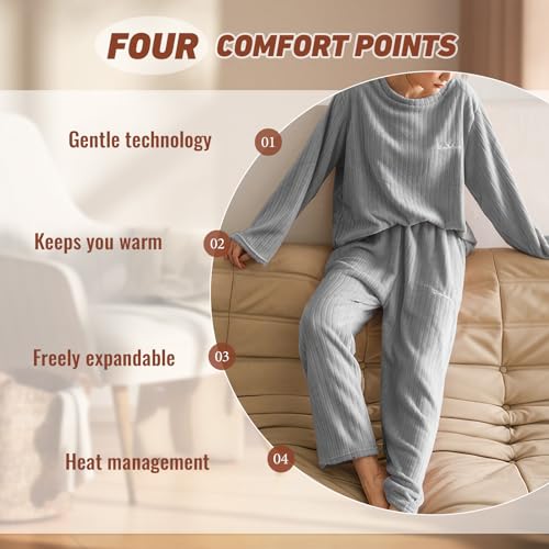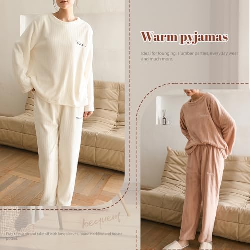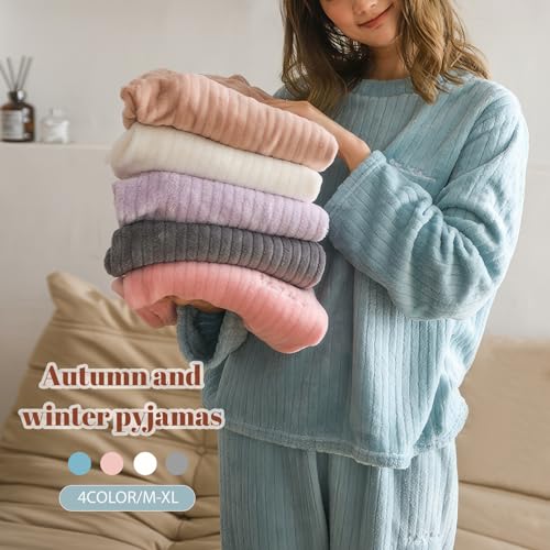 Specification: Hveuluop Gieen Ensemble de Pyjamas à Rayures Verticales pour Femmes, Automne et Hiver, Velours Corail uni, vêtements d’intérieur de Loisir, Deux pièces
