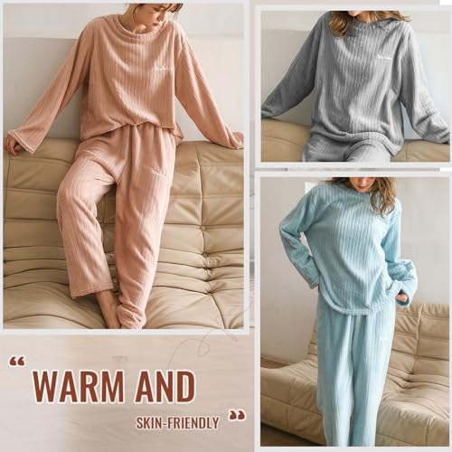 Hveuluop Gieen Ensemble de Pyjamas à Rayures Verticales pour Femmes, Automne et Hiver, Velours Corail uni, vêtements d’intérieur de Loisir, Deux pièces