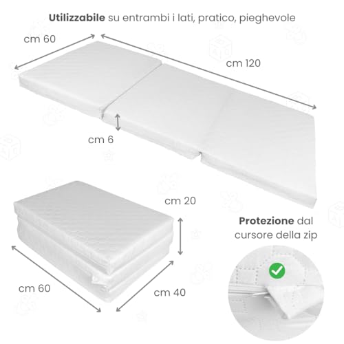 🌬️ CARACTÉRISTIQUES DU PRODUIT : Le rembourrage perforé permet un échange d’air rapide et constant à l’intérieur de la structure, préservant le matelas de la stagnation de l’humidité résiduelle, source de formation de moisissures et de bactéries. Le revêtement micro-matelassé confère au tissu une douceur élevée au toucher, la fermeture éclair de sécurité empêche un potentiel rejoint dangereux au rembourrage par le nourrisson.