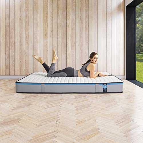 Matelas double respectueux de l’environnement – Moyen/ferme avec noyau conceptuel à ressorts électroniques surmonté d’une couche en fibre à mémoire de forme à cause un soulagement rapide de la pression et un confort optimal.