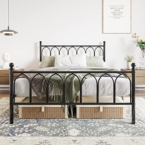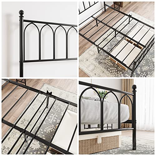 JURMERRY Cadre de lit Plateforme métallique Base de Matelas Aucun sommier à Ressorts requis Latte en Acier Robuste Support antidérapant, Noir/Argent