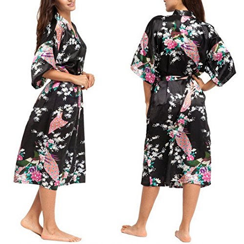 Specification: Kimono Robe de Chambre Longue Imprimé – Chemise de Nuit Soie Artificielle Paon Fleur – Beaucoup de Couleurs