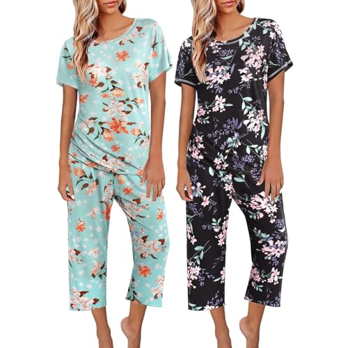 Specification: Lot De 2 Pjs Pyjama Femme Ete Pas Cher Sleepwear Top À Manches Courtes Et 3/4 Pantacourt 3/4 Ensemble Pyjama Femme Sexy Chic Printemps Été Fluide Pyjama Pas Cher Vêtement De Nuit