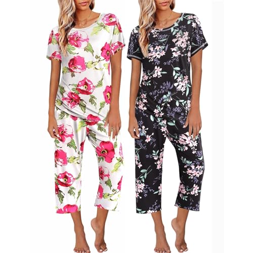 Specification: Lot De 2 Pyjama Femme Ensemble Lingerie Chemise Manche Courte Et Pantalon 3/4 Ensemble Vêtement D’intérieur Grande Taille Imprimé/Couleur Unie Sleepwear Coupe Ample Pyjama 2 Pièces