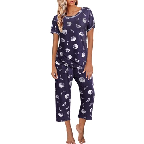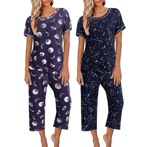 Specification: Lot De 2 Pyjama Femme Ete Bermuda Sleepwear Haut D’été Manche Courte, Pantalon 3/4 Ensemble Pyjama Femme Sexy Coupe Ample Grande Taille Vêtement De Nuit Chic Elegant Lingerie