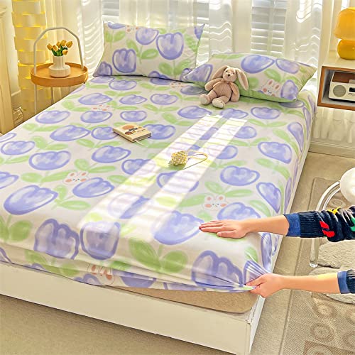 Luxury Bedding Fitted Sheets 120 * 200cm 3PCS,Cartoon Cotton Fitted Bed Sheets and Pillowcases, Mattress Protector Bedspread Bedroom for Boys and Girls Purple
